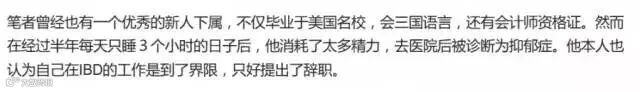 不过,这个世界是公平的。跟金融圈高薪和光鲜的外表所并存的,还有行业人员几乎普遍存在的亚健康和失眠,过劳,压力大,甚至是抑郁症。