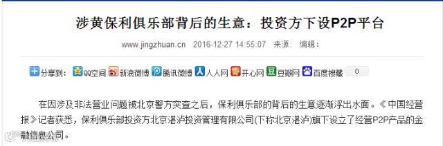 案例三:这两天P2P又因北京对三家俱乐部进行扫黄行动而传得沸沸扬扬,如下图: