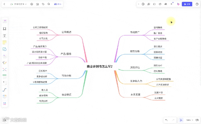 百度脑图就像是给你一张白纸和笔,一切从零开始画。而新的 AI 工具,更像是先给你一个智能草图,你直接在上面修改完善就行。