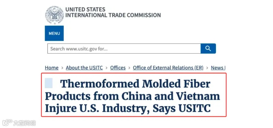 2025年12月底,美国国际贸易委员会(ITC)突然裁定,咱们中国和越南出口的“热成型模压纤维产品”,也就是咱们常说的环保餐具,对美国本土产业造成了“实质性损害”呢。