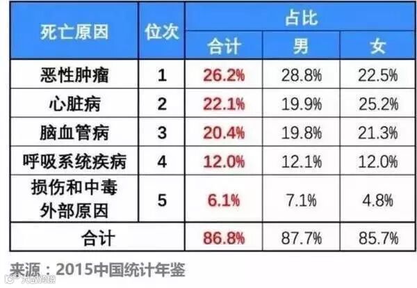 先给大家看一份数据,看看我们主要会有哪几种死亡风险: