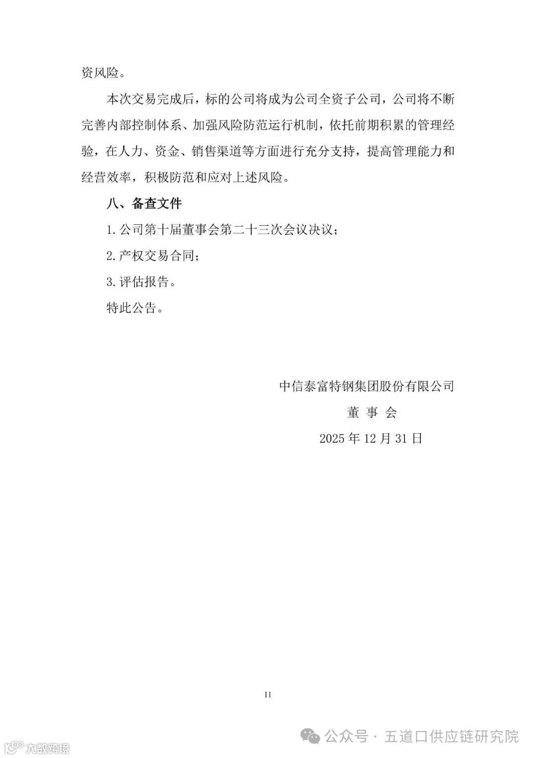 12月30日晚间,中信特钢(000708)发布公告,宣布其全资子公司泰富科创特钢(上海)有限公司拟以15.09亿元自有资金,收购广州空港产业投资集团有限公司(简称“广州空港”)持有的富景特有限公司(简称“富景特”)100%股权。