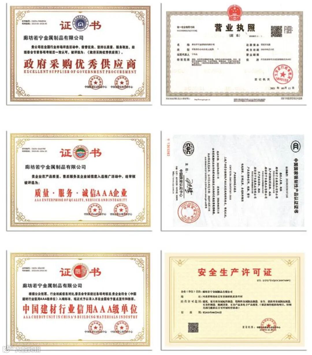 廊坊若宁金属制品有限公司是一家专业生产加工空调室外机支架、附件、液晶电视挂架、吊架、底座及摇摆架等金属结构件的企业,具备完整、科学的质量管理体系 [2] 。