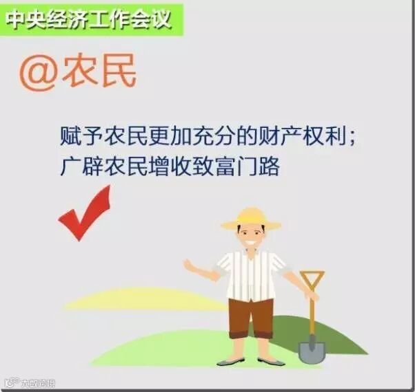 【红包】深入推进农业供给侧结构性改革。深化农村产权制度改革,明晰农村集体产权归属,赋予农民更加充分的财产权利。统筹推进农村土地征收、集体经营性建设用地入市、宅基地制度改革试点。广辟农民增收致富门路。