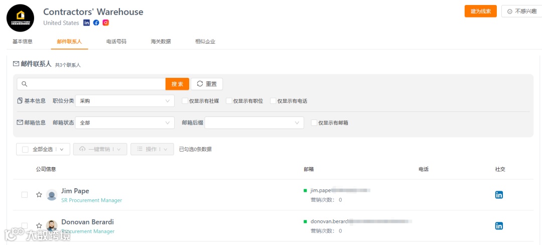 - 显示企业联系人数量,辅助判断采购商规模;