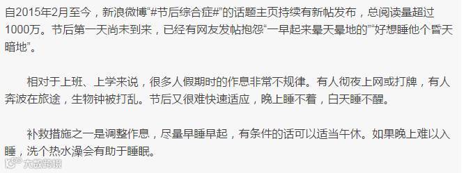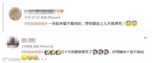 新浪微博网友关于十一假期之后#节后综合症#话题的讨论。来源:新浪微博截图