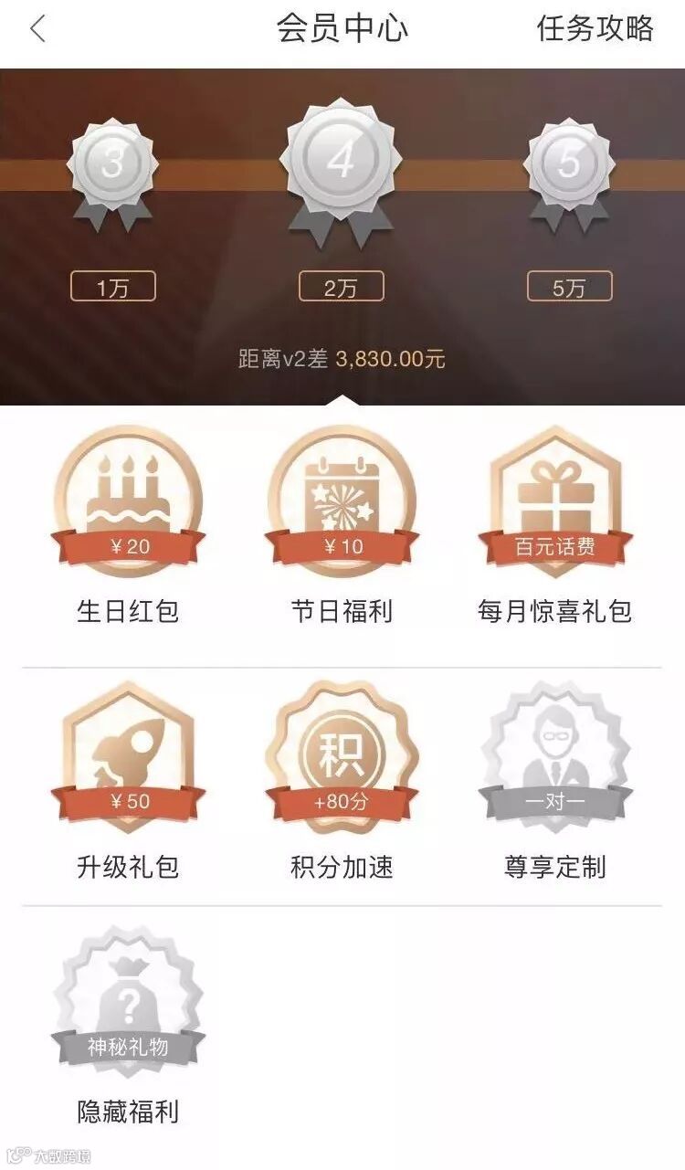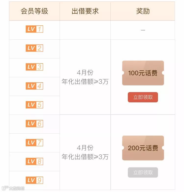 各会员等级话费奖励如下: