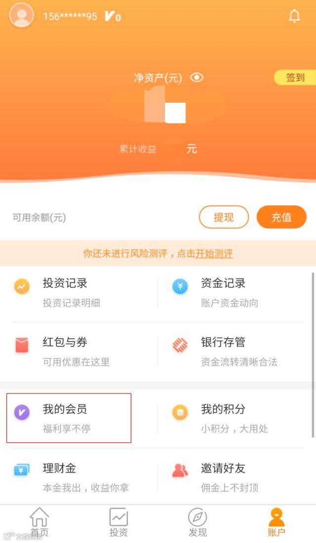 登录投融家APP,点击账户页面的“我的会员”即可进入会员中心