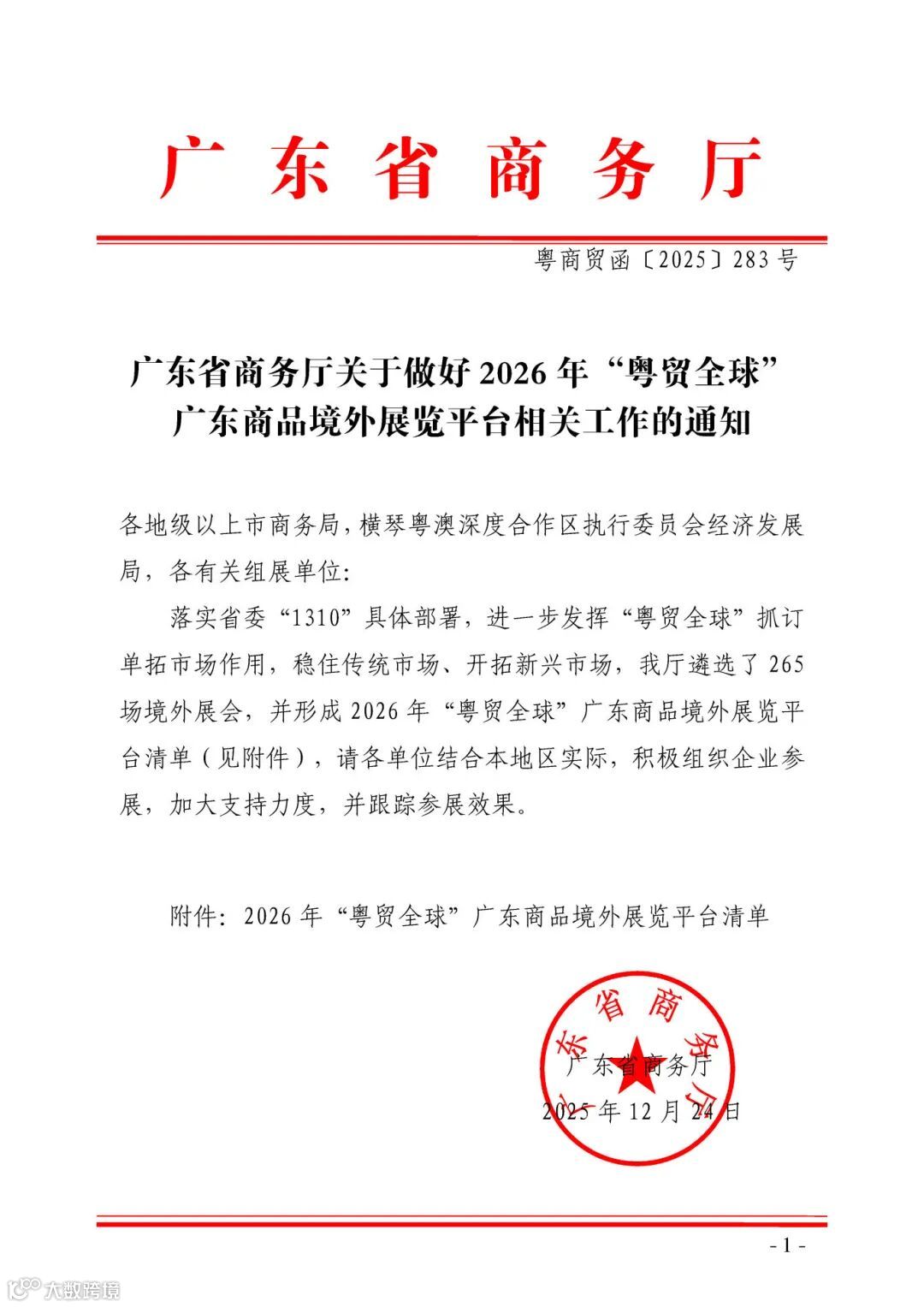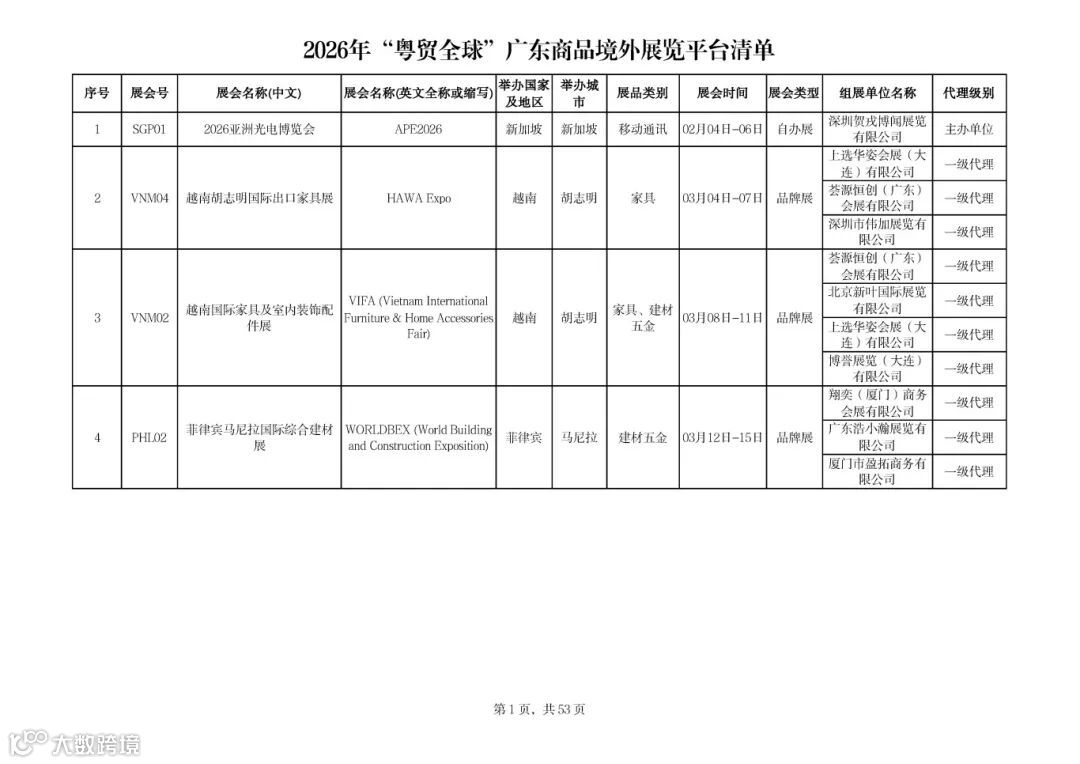 导读:关于做好2026年“粤贸全球”广东商品境外展览平台相关工作的通知