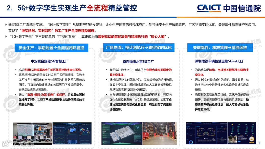 “5G+数字孪生”应用已从研发设计、可视化运营,延伸至安全生产闭环管控、厂区物流实时优化、关键部件精准运维,实现“虚实映射、实时监控”的全流程精益管理。