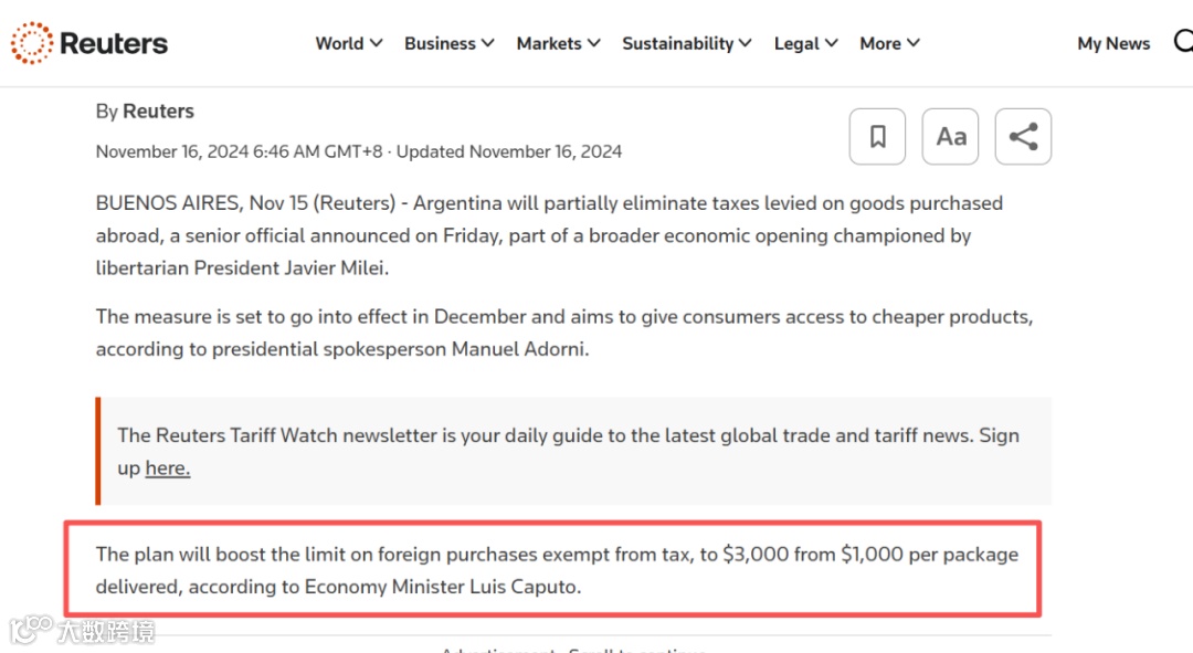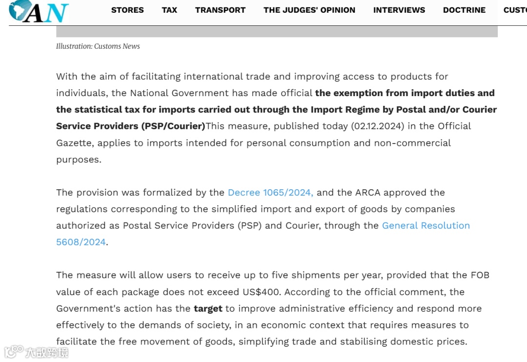 此外,阿根廷将跨境包裹免税与简化申报限额由1000美元上调至3000美元,覆盖更多中等客单价商品,减少因单笔金额超限导致的弃单或拆单现象。