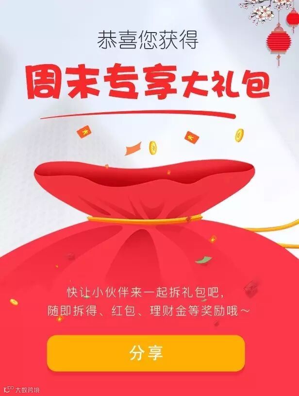移动端单笔投资满2000元,即可分享给好友一起拆投资红包、理财金