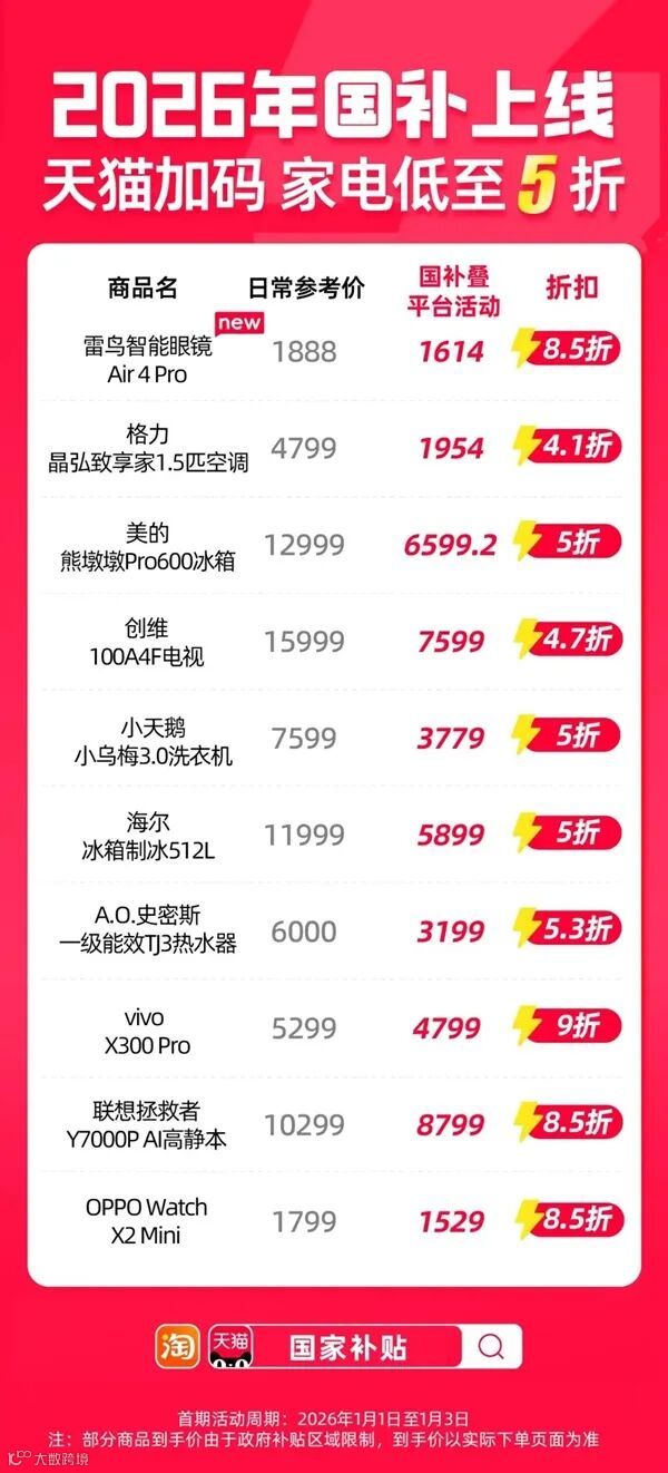 为满足元旦、春节等消费旺季需求,国家已向地方提前下达2026年第一批625亿元超长期特别国债资金,专项支持消费品以旧换新。