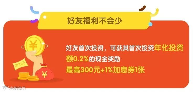 好友首次投资,可获得其次投资年化投资额0.2%的现金奖励,最高300元+1%加息券1张