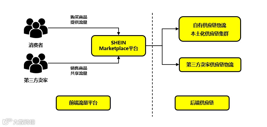 2023年5月,SHEIN正式上线开放平台SHEIN Marketplace,推出全托管模式——第三方卖家专注产品开发与供货,SHEIN承担仓储、物流、营销、履约等全链路运营。
