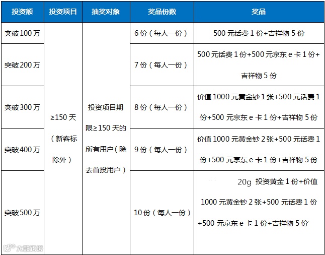 投资150天及以上项目即送抽奖资格!150天及以上项目成交额每突破100万即抽奖!