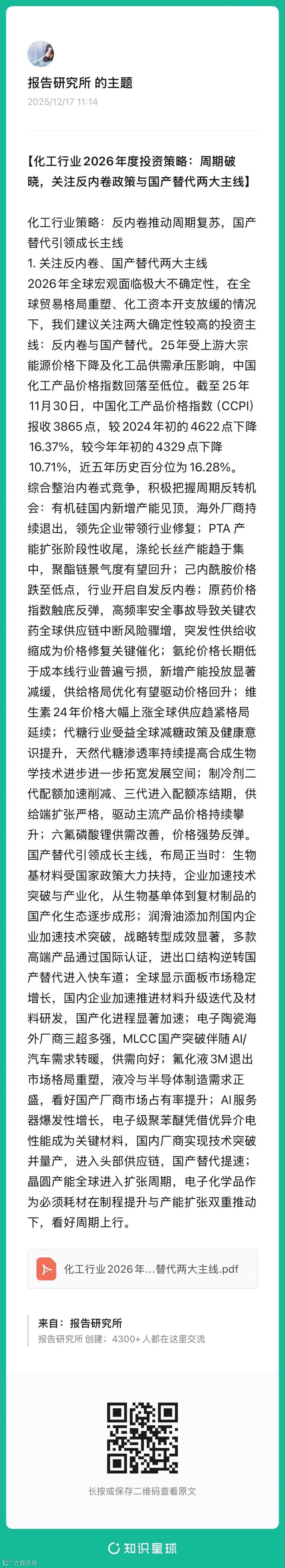 全球化工行业在能源结构转型与宏观政策调整中呈现分化格局:煤炭产能释放叠加新能源替代提速,基础化工成本压力边际缓解,价格中枢趋于稳定;传统重资产化工领域因新增产能集中释放,仍处弱周期震荡阶段;油气深加工产业链凭借成本优势与高端化转型,盈利韧性凸显;电子化学品、可降解材料、新能源材料等细分赛道依托技术迭代与政策红利,需求放量驱动盈利修复。