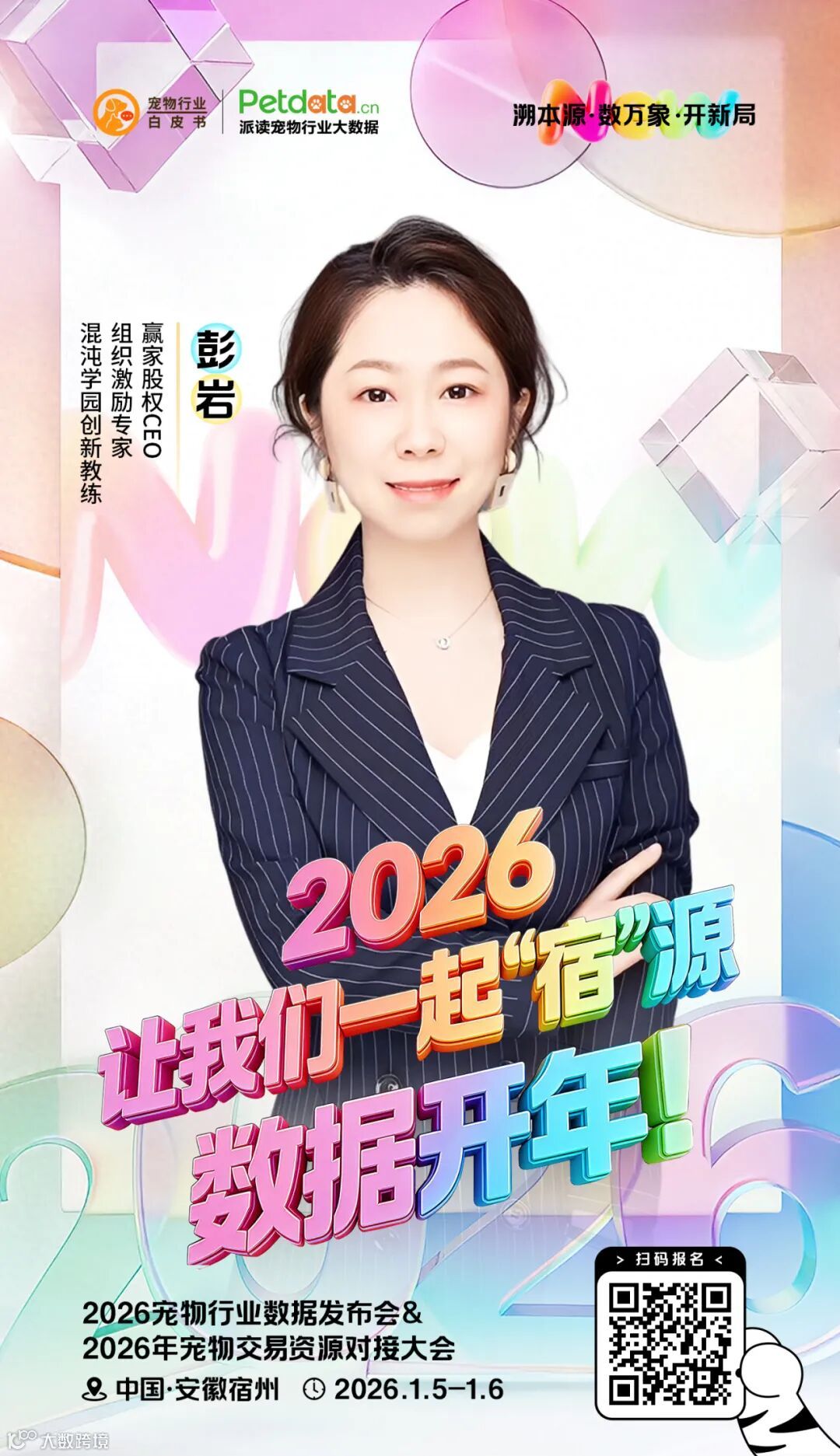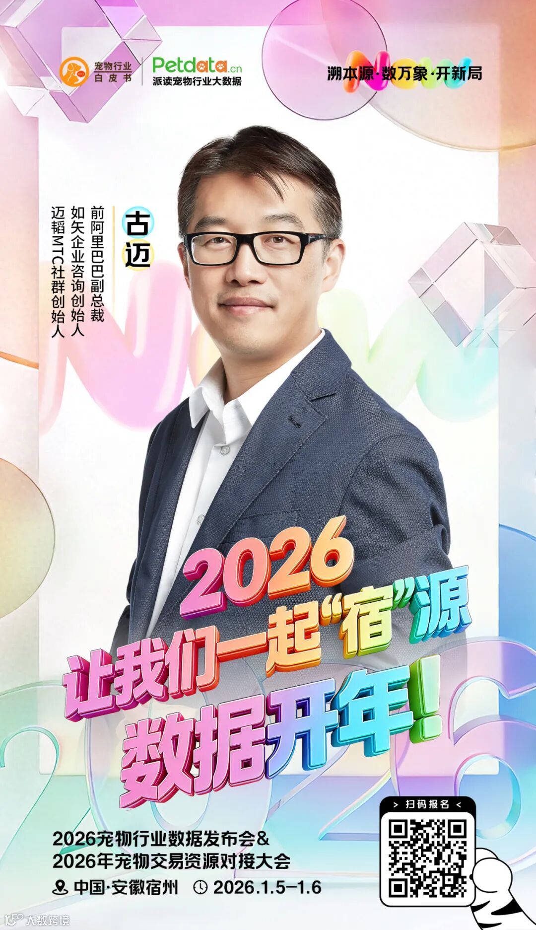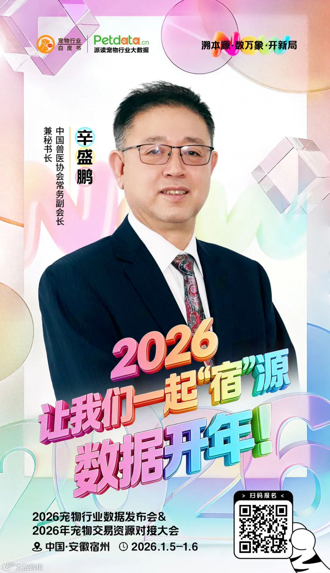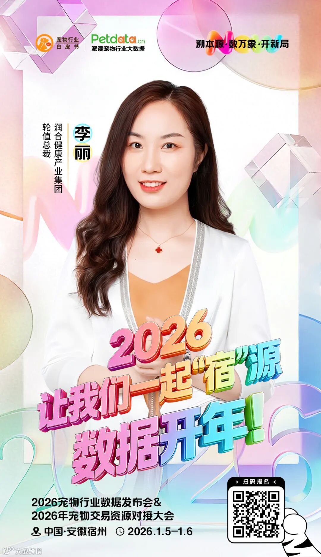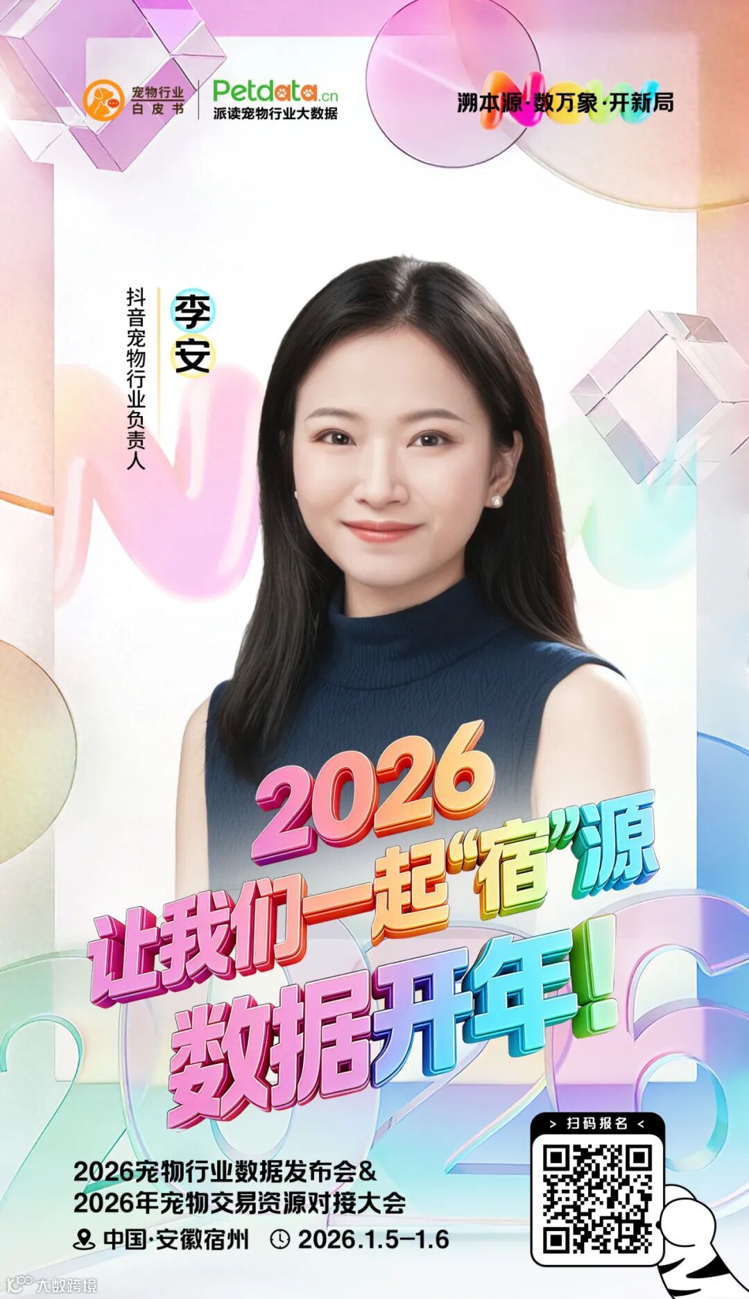 由宠物行业白皮书,派读宠物行业大数据平台主办、福建贝创投资发展集团有限公司,安徽恩宠有加宠物用品有限公司联合主办、安徽省宠物行业协会,华南农业大学动物科学学院,赣南创新与转化医学研究院,宿州市宠物经济商会协办、北京派读科技有限公司,宿州市广播电视台承办的2026年中国宠物行业数据发布会将于2026年1月5日-6日在宿州丰大国际酒店隆重举行。今天,白皮书团队将为大家介绍本次大会的重量级参会嘉宾以及他们带来的分享内容。