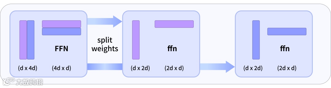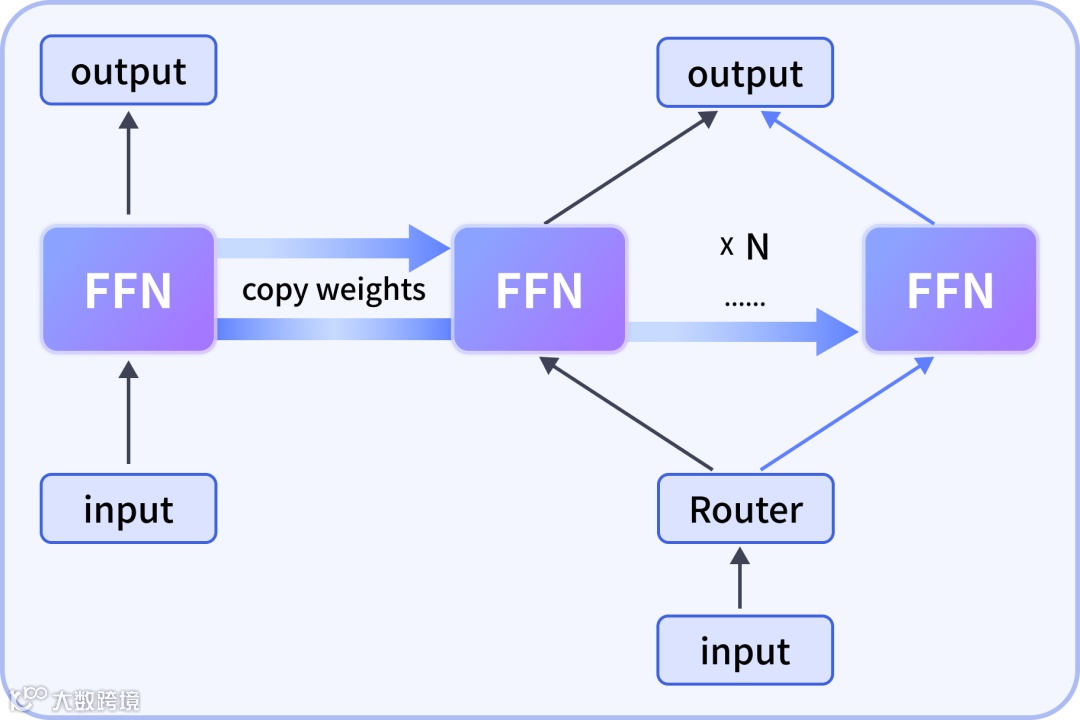 1. MoE 热启动技术:基于 Dense 模型改造 MoE 模型。第一步,将 FFN 部分细粒度拆分为多个子网络作为专家,并按显存配置复制;第二步,复用 Dense 模型的 Attention 部分。细粒度拆分相较粗粒度更具灵活性与效果优势。