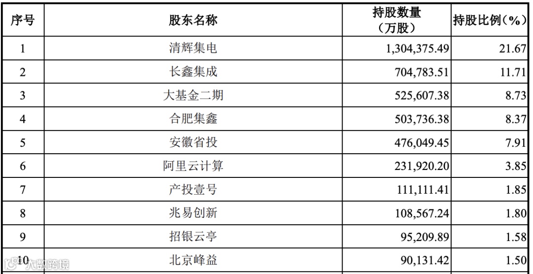 长鑫科技前十大股东及持股比例