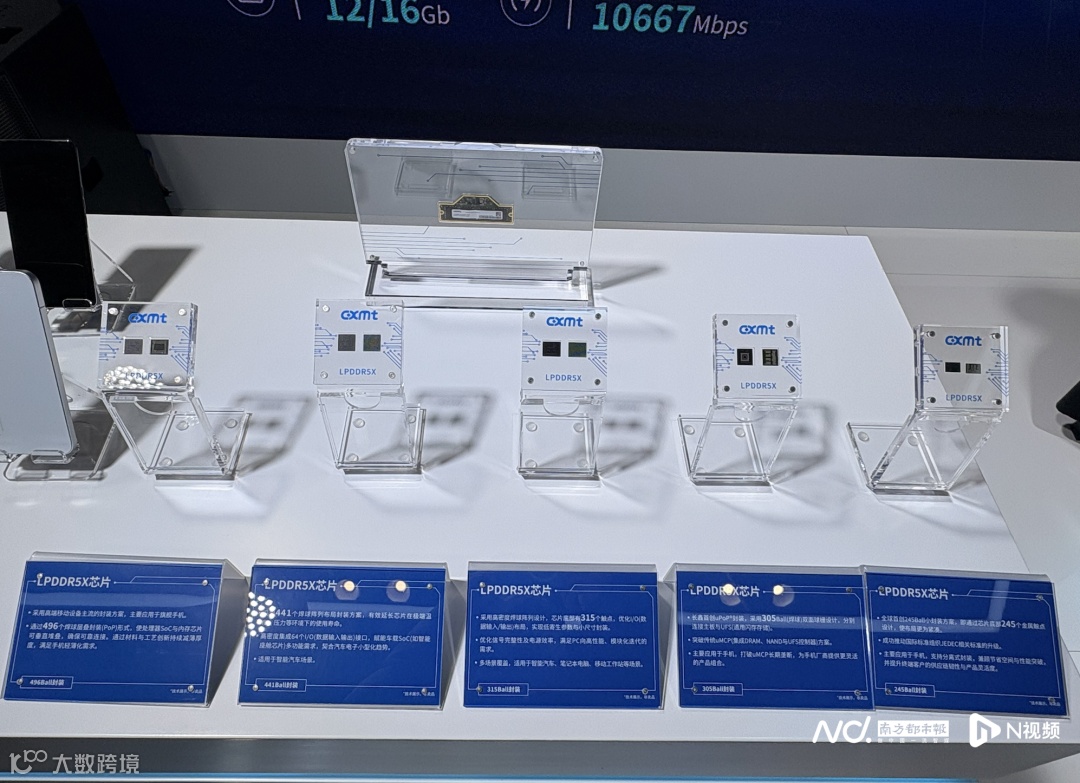 在2025年11月下旬的中国国际半导体博览会上,长鑫科技首次对外展出旗下DDR5和LPDDR5X产品。图:杨柳