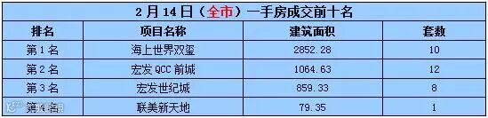 而其中海上世界双玺不但在15日新房成交中夺得亚军,更是在2月14日当天拿下当天成交桂冠。