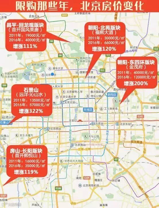 从2011年开始,北京执行外地人纳税、社保满五年的限购政策,到如今已满五年,2011年热门楼盘当时价格与现在售价对比,心中不免感慨,祖国河山一片红。