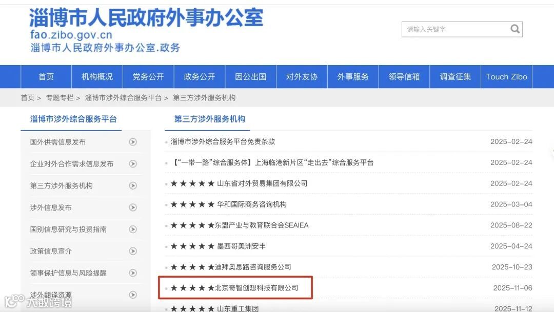 奇智创想还入选为淄博市涉外综合服务平台第三方涉外服务机构。依托淄博市外办搭建的平台,奇智创想将借助自身专业知识和实践经验,赋能淄博市优势产业出海。