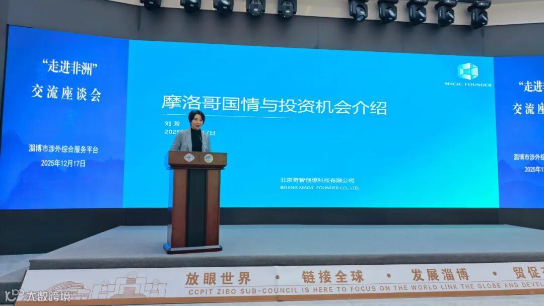 12月17日,由淄博市外办举办的“走进非洲”交流座谈会圆满举行。本次活动吸引了全淄博市36家有意拓展非洲市场的企业代表积极参与。奇智创想创始人刘芳受邀作为非洲出海专家为参会企业做“出海摩洛哥”的专题分享。