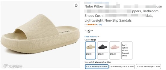 该专利保护范围涵盖拖鞋整体轮廓、鞋面结构及底部纹路等设计特征。原告确认未向任何被告授权使用该专利,目前已锁定亚马逊等平台多款涉嫌侵权产品——尽管部分产品标题强调“防滑”“缓冲”等差异化卖点,但其外观仍落入专利保护范围。