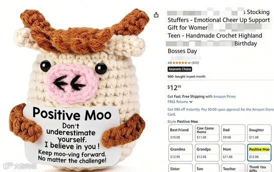 玩具类卖家应重点排查毛绒玩具、钩针玩偶、节日礼物等产品中是否存在“POSITIVE MOO”字样及其变形使用。