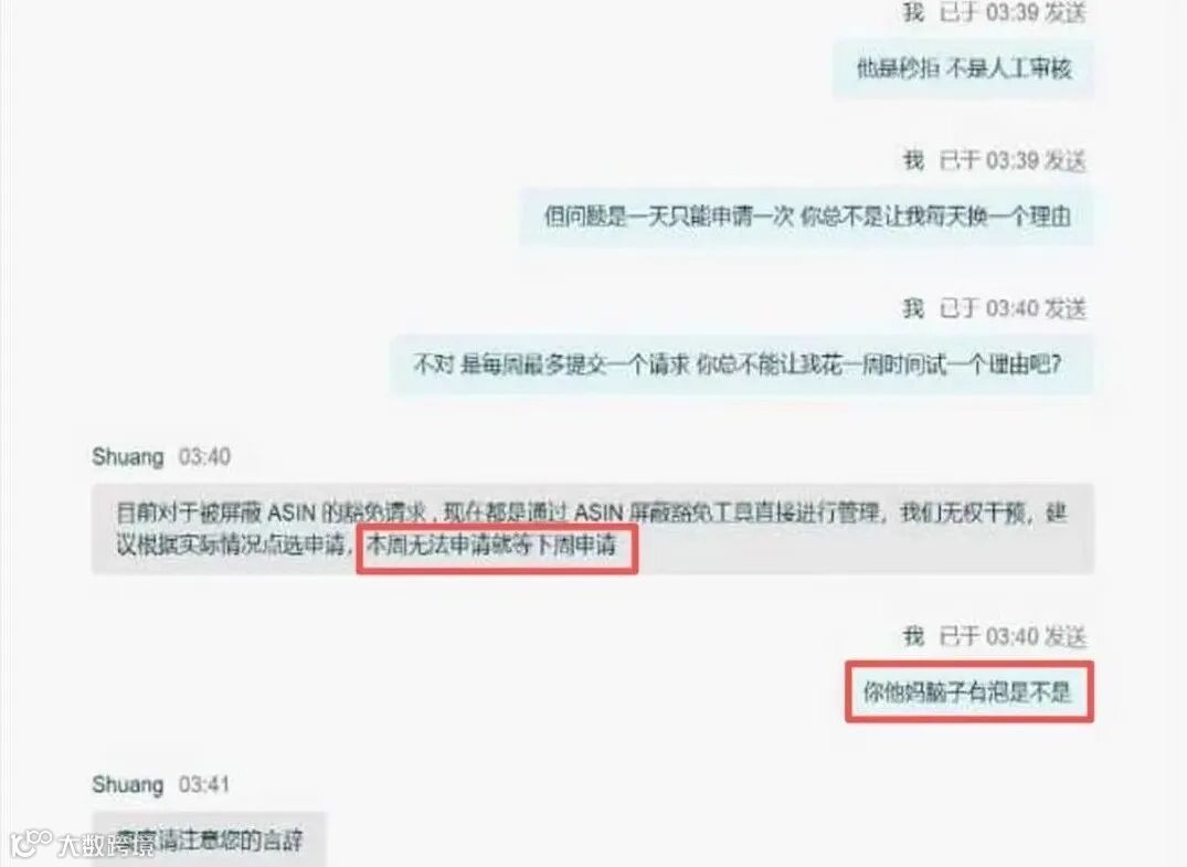 在反复沟通无果后,部分卖家可能情绪崩溃,语言逐渐升级,从抱怨、指责最终演变为辱骂。这正是亚马逊严惩的行为之一。
