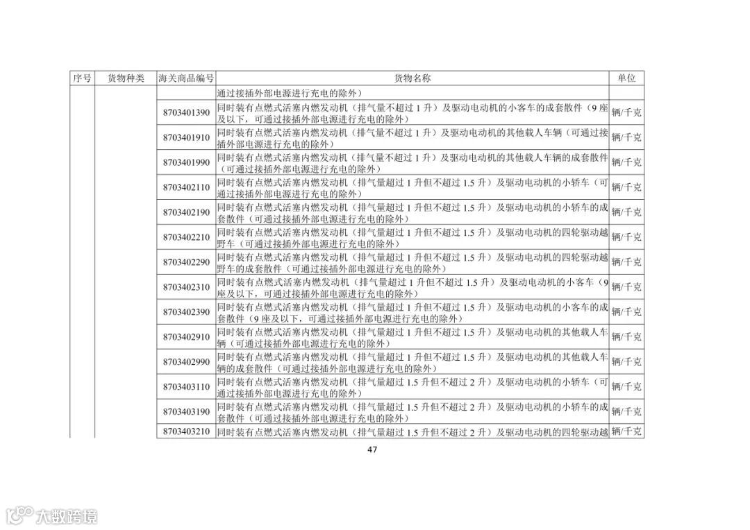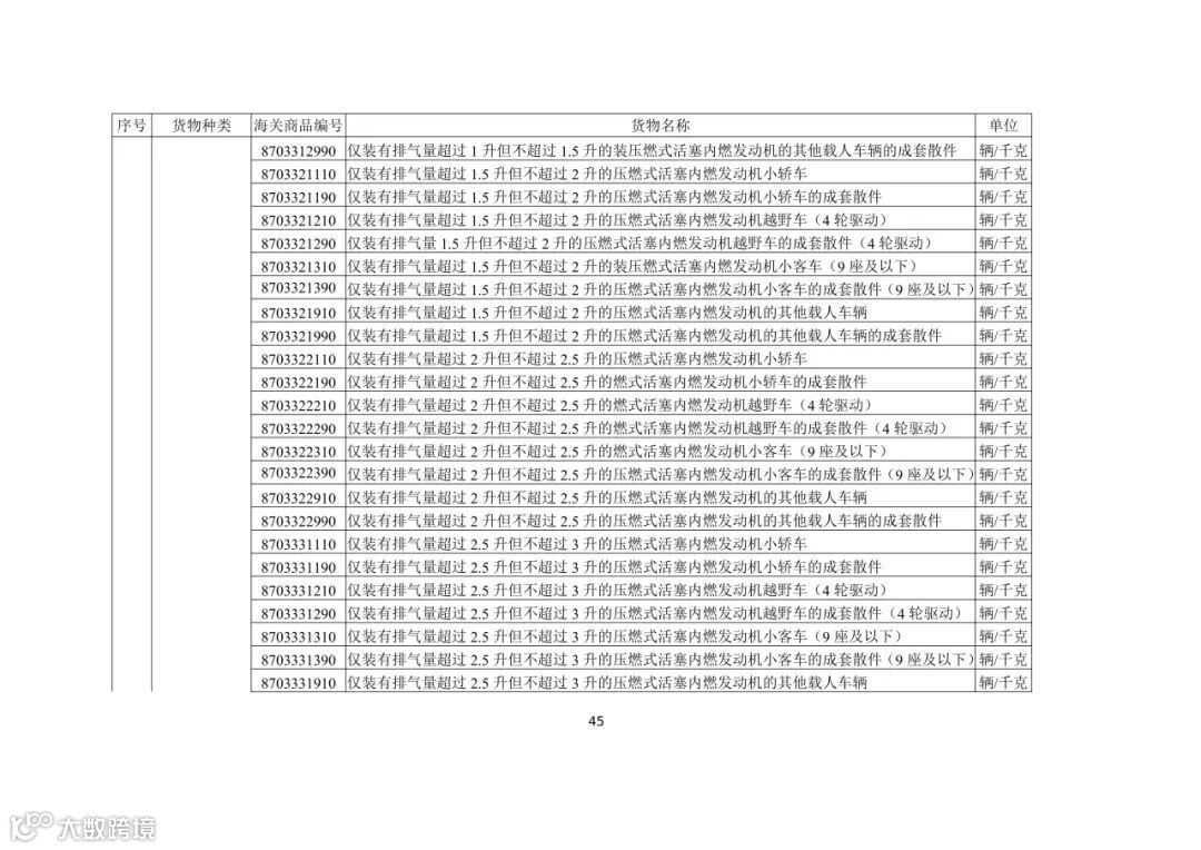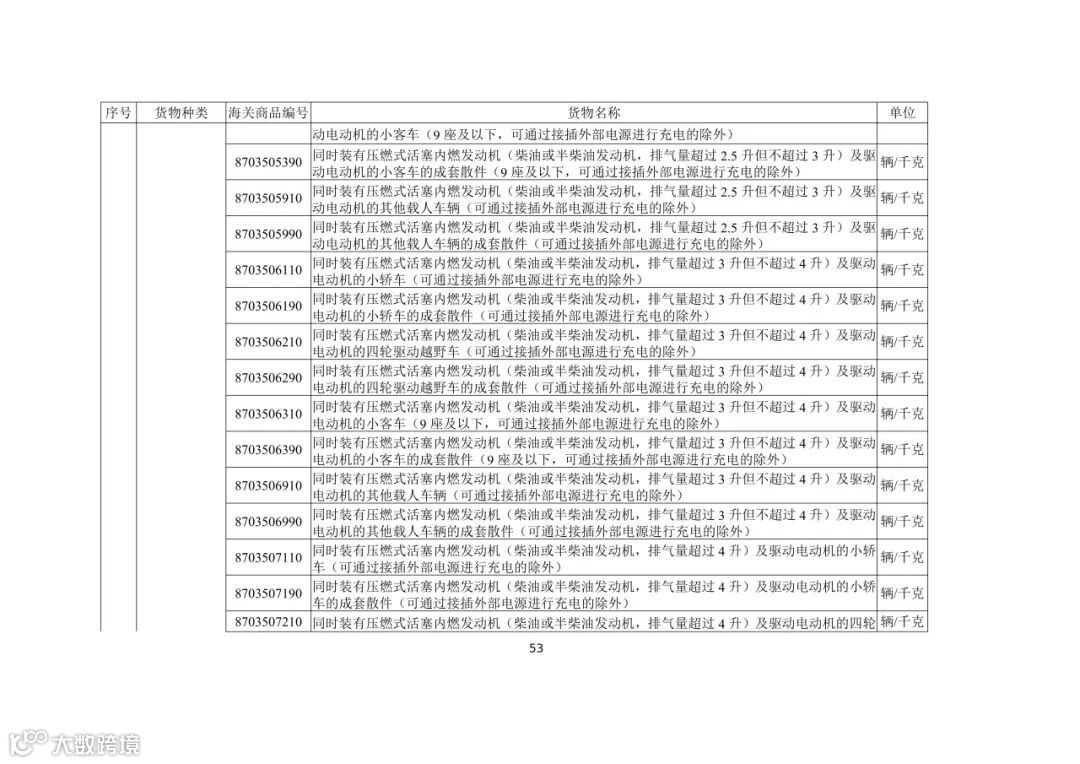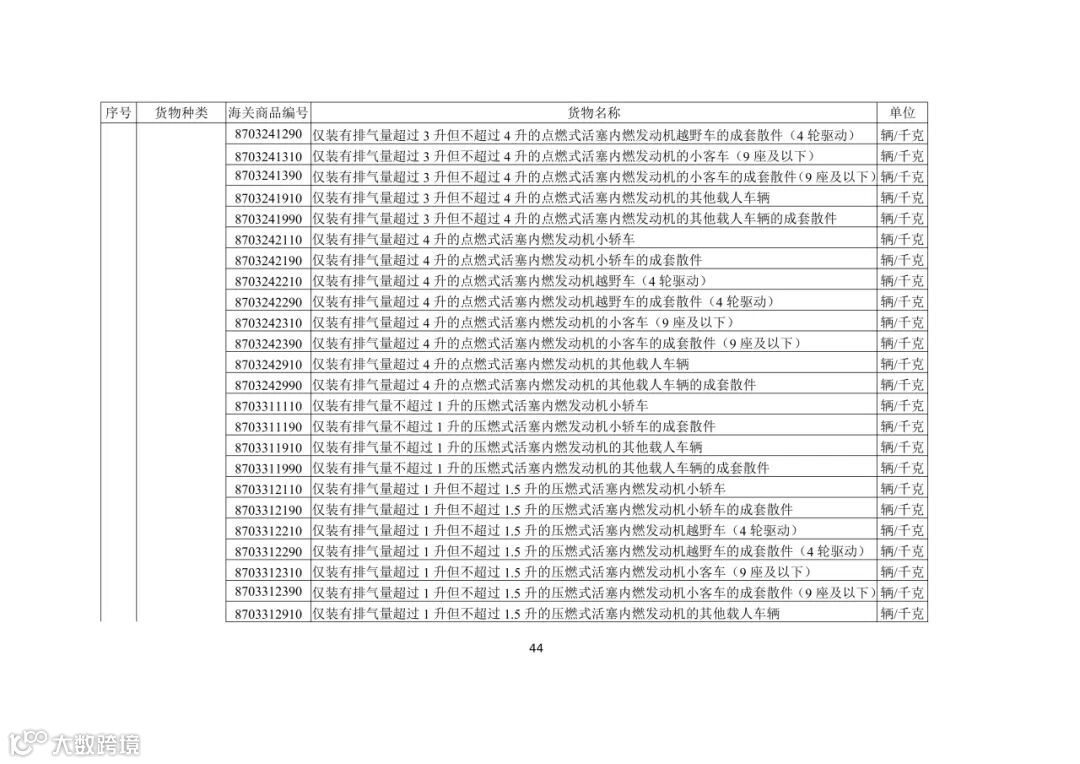 (五)出口活牛(对港澳以外市场)、活猪(对港澳以外市场)、活鸡(对香港以外市场)、牛肉、猪肉、鸡肉、天然砂(含标准砂)、矾土、磷矿石、镁砂、滑石块(粉)、萤石(氟石)、稀土、锡及锡制品、钨及钨制品、钼及钼制品、锑及锑制品、焦炭、成品油(润滑油、润滑脂、润滑油基础油)、石蜡、部分金属及制品、硫酸二钠、碳化硅、消耗臭氧层物质、柠檬酸、白银、铂金(以加工贸易方式出口)、铟及铟制品、摩托车(含全地形车)及其发动机和车架、汽车(包括成套散件)及其底盘的,需按规定申领出口许可证。其中,消耗臭氧层物质的货样、广告物品、捐赠、退运、残液需凭出口许可证出口;以一般贸易、加工贸易、边境贸易和捐赠贸易方式出口汽车、摩托车产品的,需按规定的条件申领出口许可证;以工程承包方式出口汽车、摩托车产品的,凭对外承包工程项目备案回执或特定项目立项回执等材料申领出口许可证;以上述贸易方式出口非原产于中国的汽车(限新车)、摩托车产品的,凭进口海关单据和货物出口合同申领出口许可证。