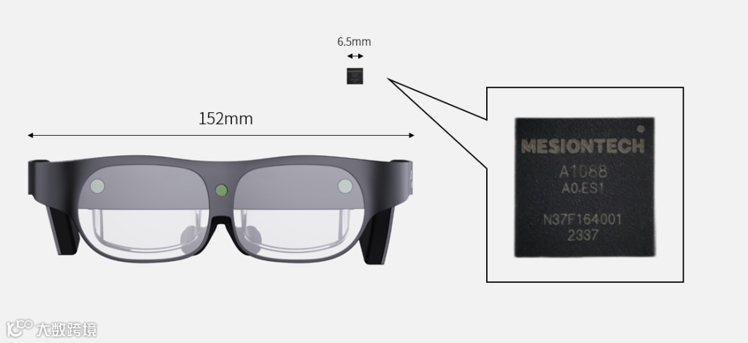 蜻宇是基于 A1088 打造的 AR 设备方案,双眼分辨率为 3840×1200,刷新率为 90Hz;搭载双目鱼眼摄像头与 IMU,内置的 A1088 空间定位协处理芯片,专门处理空间计算,实现 inside-out 6DoF 空间定位。