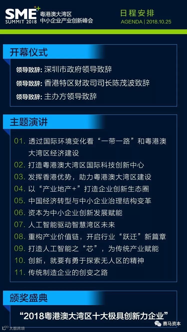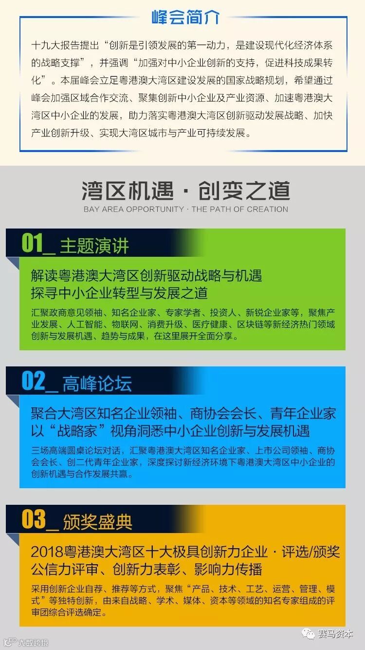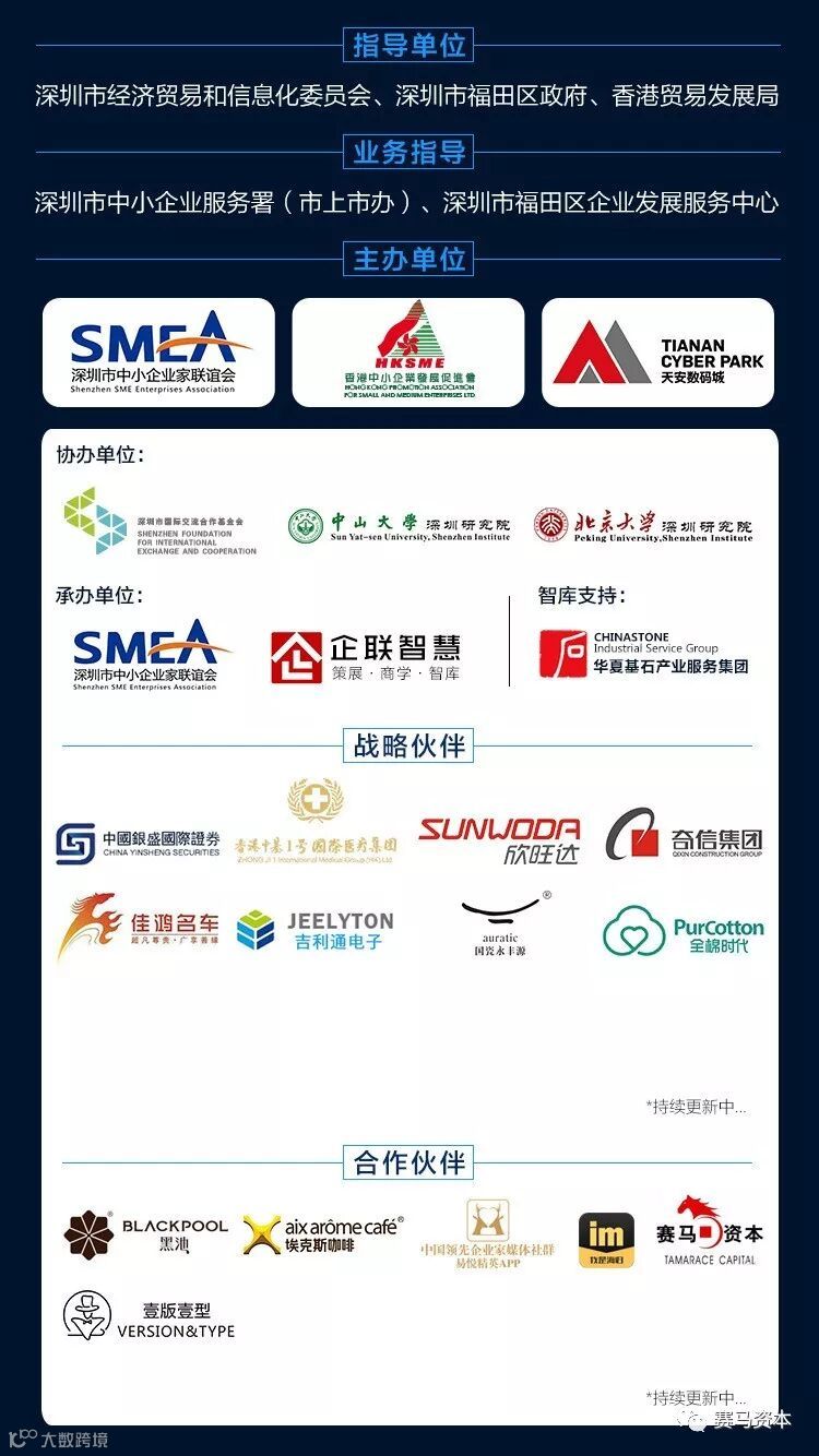 由深圳市中小企业家联谊会、香港中小企业发展促进会、天安数码城主办,深圳市国际交流合作基金会、中山大学深圳研究院、北京大学深圳研究院协办,深圳市中小企业家联谊会、企联智慧承办,并与赛马资本、黑池、埃克斯咖啡、中国领先企业家媒体社群等合作的第一届粤港澳大湾区中小企业产业创新峰会于2018年10月25日,在深圳市福田区五洲宾馆举行,欢迎您的到来。