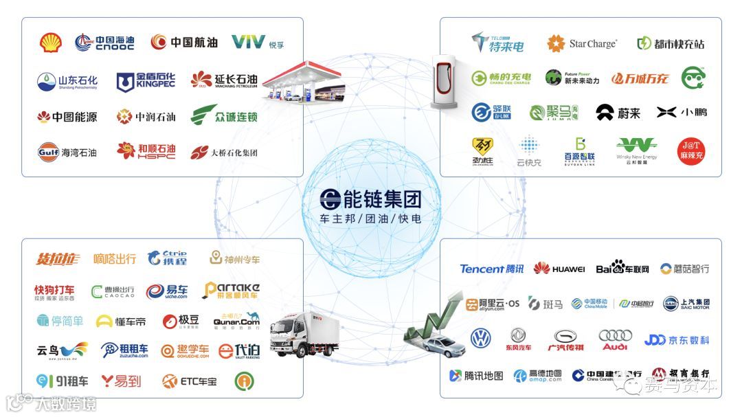 能链集团(车主邦/团油/快电)的能源供应方合作伙伴包括中海油、中航油、壳牌、道达尔、大桥石化、金盾石化等国资、外资、民营成品油企业,以及特来电、星星充电、云快充、云杉智慧、珠海驿联、万城万充等新能源运营商。