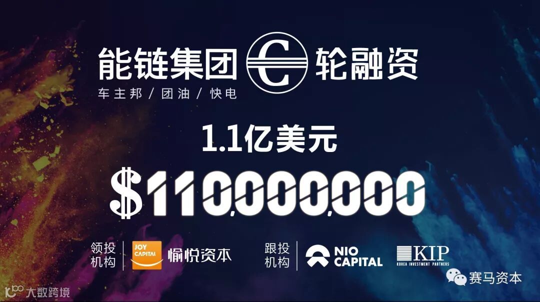 11月25日,赛马资本已投企业数字化出行能源开放平台能链集团(车主邦/团油/快电)宣布完成C轮融资,融资金额1.1亿美元,愉悦资本领投,蔚来资本、KIP中国跟投,这是能链集团在1年内的第3次融资。