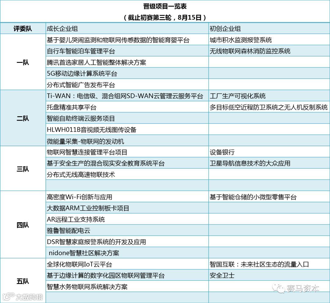 更多精彩项目内容,小编就不在这里透露了,如果想了解通信物联网行业的优质晋级项目信息,可以关注赛马资本的公众号文章,以及在8月23日举行的通信物联网行业赛系列活动—— 深圳市(南山)通信物联网行业资源对接会(凡是在初赛中,有超过4组评委举牌的超级优质项目,会在23号这次的行业资源对接会中再次闪亮登场)和8月31日由日海智能和赛马资本联合主办的通信物联网行业赛决赛。
