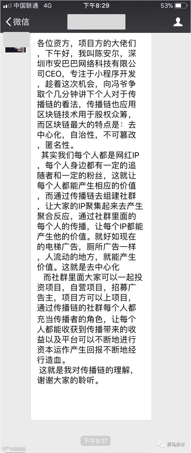 应这段时间全国各处发声者的要求,7月29日,传说中的冯爷终于带着链人 · 链智 · 链资源的共享传播链首次在赛马资本总部千里马厅闪亮登场。现场宾客云集有投资大咖、企业家、行业专家、传播链志愿者、竞选者等等。