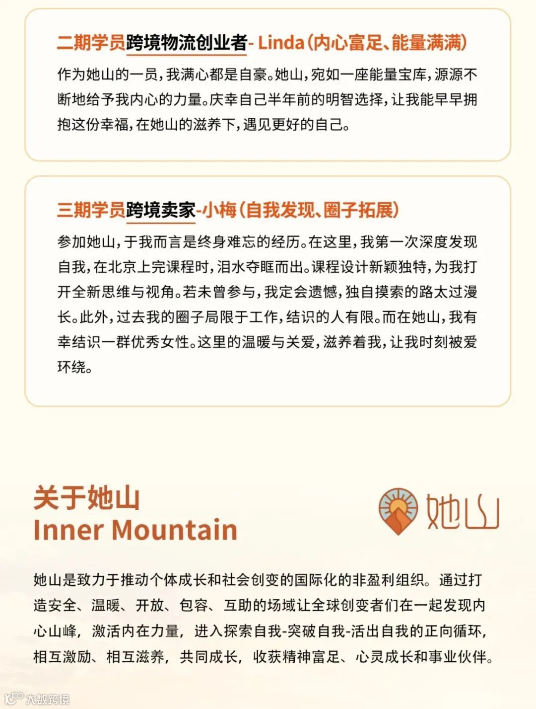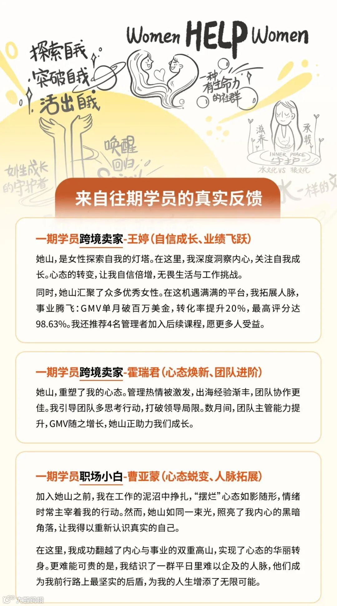在追求梦想与自我实现的征途上,每一位女性皆是独一无二的星辰,蕴藏着无尽的潜力与光芒。B2B跨境电商集团敦煌网旗下”她山Inner Mountain“倾力打造的“出海巾帼女性成长训练营”已经进行到第五期,宛如一座充满机遇与希望的灯塔,为女性量身定制全方位成长路径,助力您唤醒内在无限潜能,绽放属于自己的夺目光彩。
