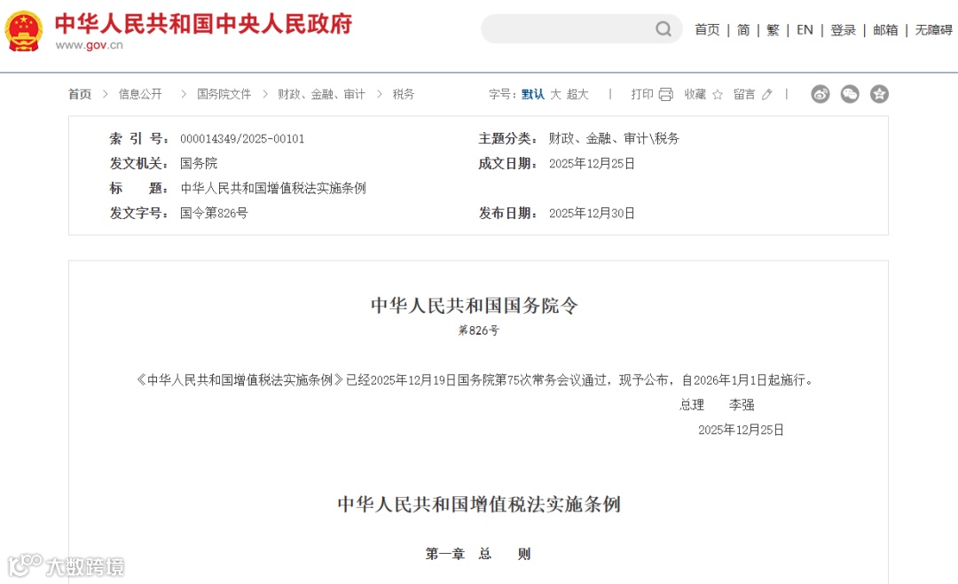 1. 施行时间:2026年1月1日起与《中华人民共和国增值税法》同步施行。
