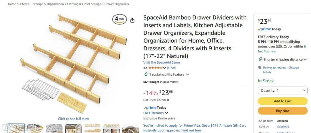 原告Patent One LLC是特拉华州一家专注于家居收纳产品研发与销售的企业。其核心品牌SpaceAid以设计实用、环保且美观的收纳解决方案为核心使命,致力于帮助用户高效整理生活空间,提升日常效率与生活品质。本次维权产品为一款可调节抽屉隔板,核心结构是内置弹簧设计,通过拉伸即可固定在抽屉内,无需打孔或额外工具。