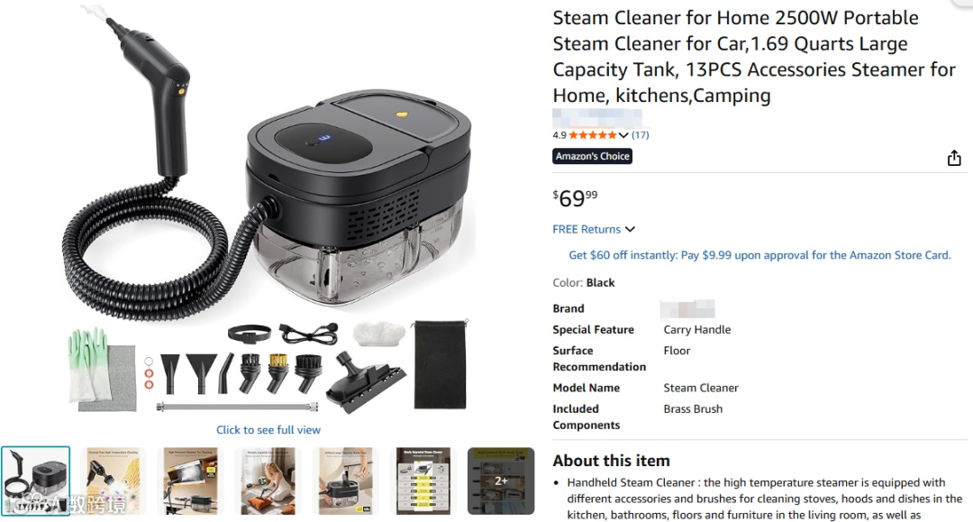 原告Jiafan Chen是一位来自福建的跨境卖家,致力于为现代家庭提供更洁净的家居环境。其为现代家庭设计了一款蒸汽清洁器,该产品通过创新技术,利用高温高压蒸汽实现深度清洁与杀菌,用于厨房油污、地面、家电、车内等多场景清洁。