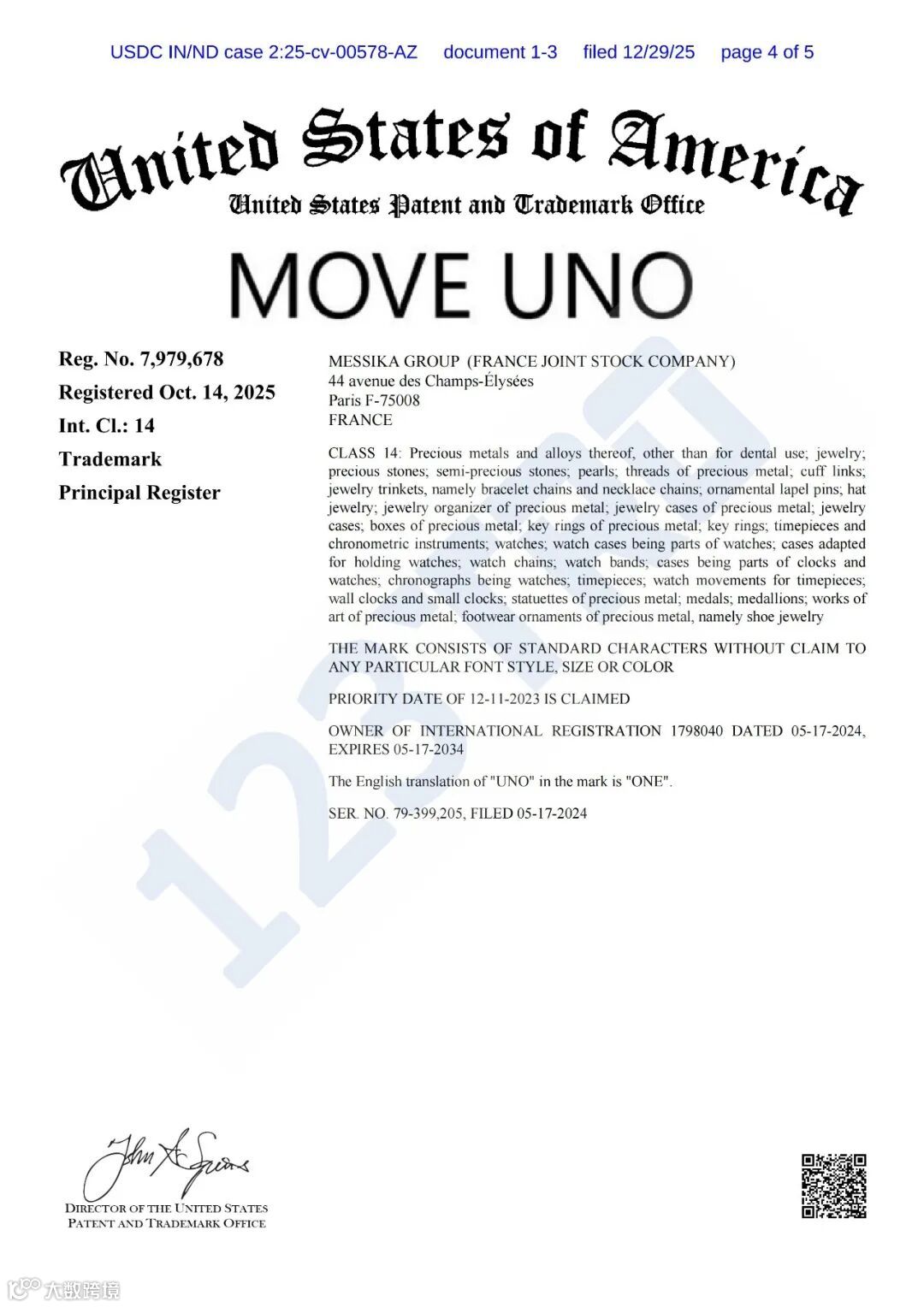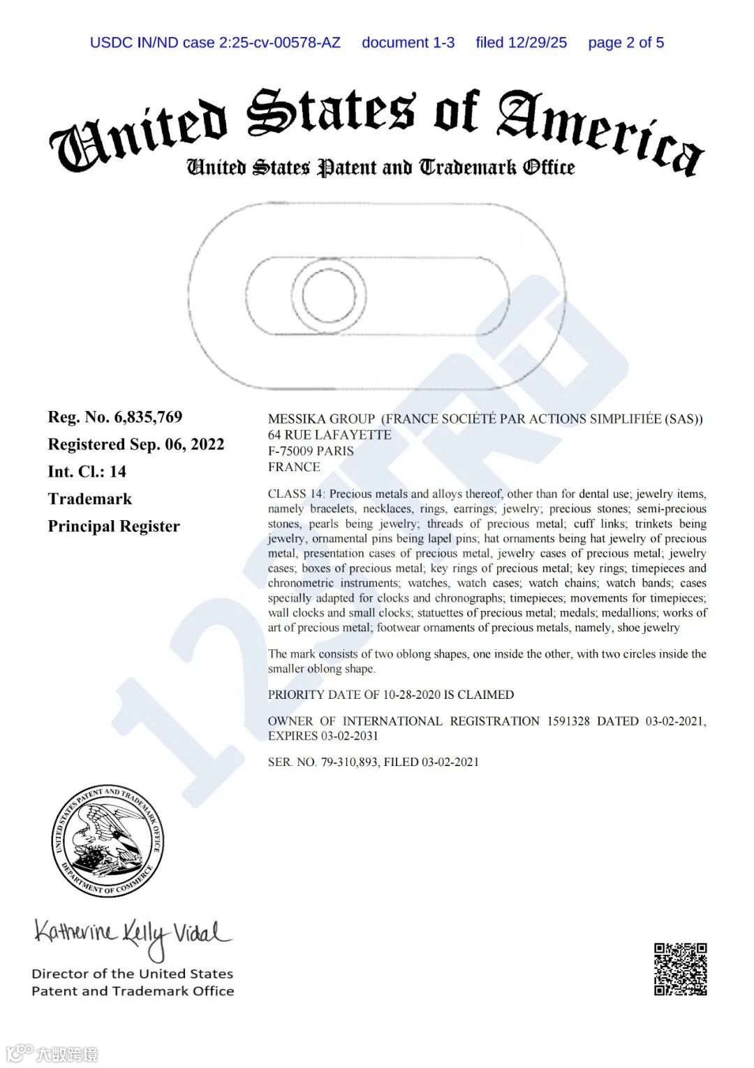 本案原告Messika Group于2025年12月29日向印第安纳州北部地方法院提起诉讼(案号:25-cv-578),代理律所为Flener律师事务所。区别于常见起诉地(如伊利诺伊州),本次选择印第安纳州,或将显著增加被告应诉成本。目前原告尚未申请临时限制令(TRO),预计1–2周内将有进一步动向。
