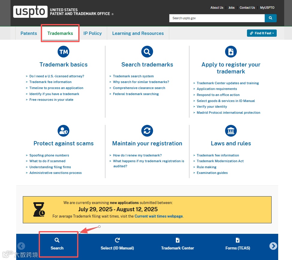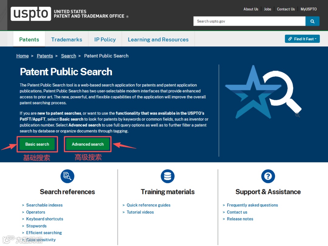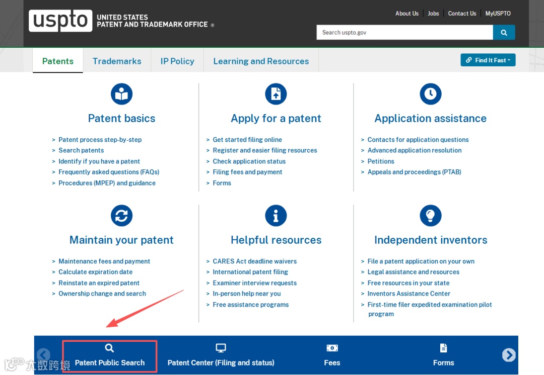 1、打开美国专利查询网站:https://www.uspto.gov/patents
