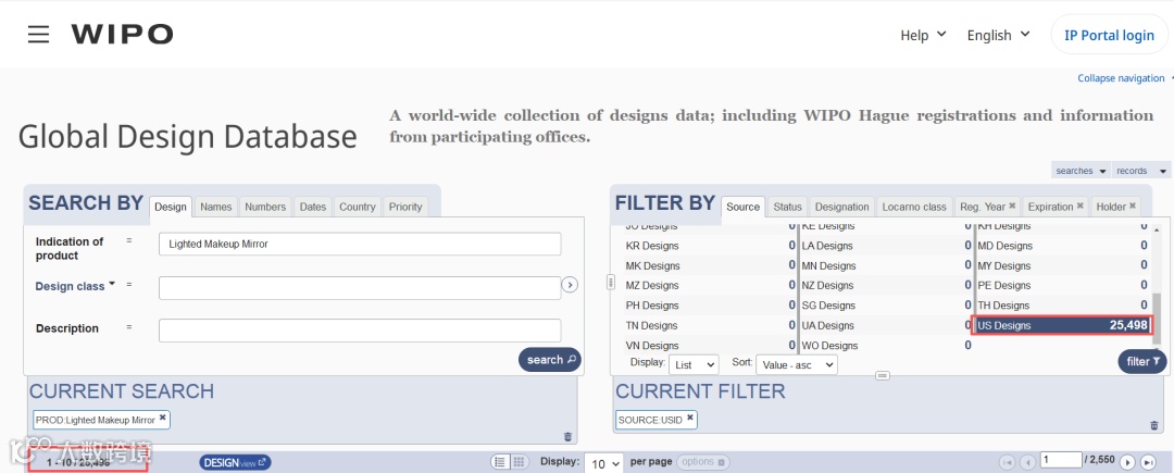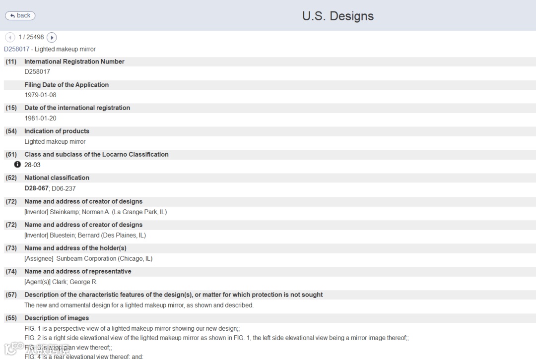 这时候我们看到出现了25,498个美国外观设计专利的结果。