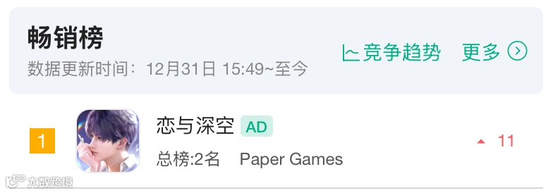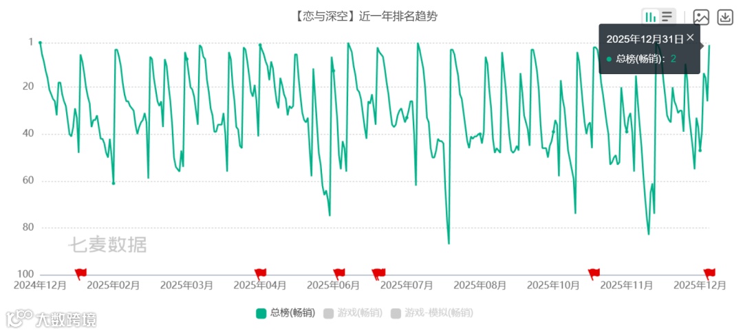 这事放几年前说,应该没人会相信。但眼看游戏今年(截至发稿前)3次登顶iOS畅销总榜,6次登顶游戏畅销榜,频率越来越高的同时,速度也越来越快,那这便不是偶然,而是《恋与深空》的常态水平。