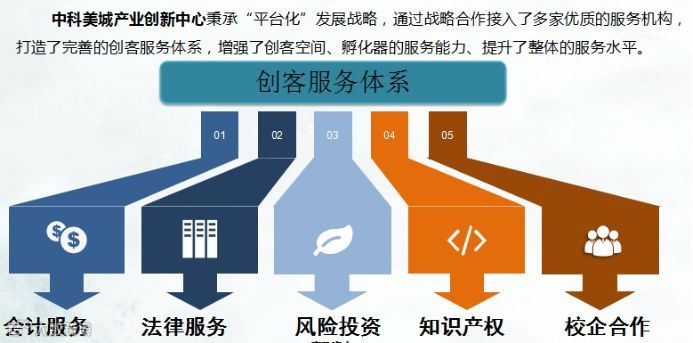 3、对于园区资产方,只需要把现有的园区空间托管给中科美城,即可获得专业的空间运营服务体系、IT系统支撑、强大的内容服务体系等;招商、运营全部由中科美城负责,园区资产方享受出租带来的收益及额外的资产收益。根据园区所在地的产业发展基础,我们还可以建立主题孵化器、众创空间、产业集聚区等。
