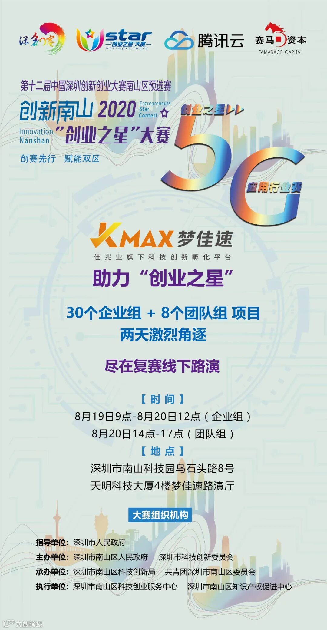 创新南山2020“创业之星”大赛5G应用行业赛由腾讯云牵头,赛马资本执行承办,特邀深圳5G产业联盟、中友会、华创会、前海股权交易中心等单位合作支持,KMAX梦佳速、中科美城、IDH创展谷、融中科科技众创空间、廊湾产业加速器等空间支持,同时得到创东方、远致富海、旦恩资本等30家投资机构的大力支持。大赛宣传方面,得到国际知名媒体Fast Company的支持。