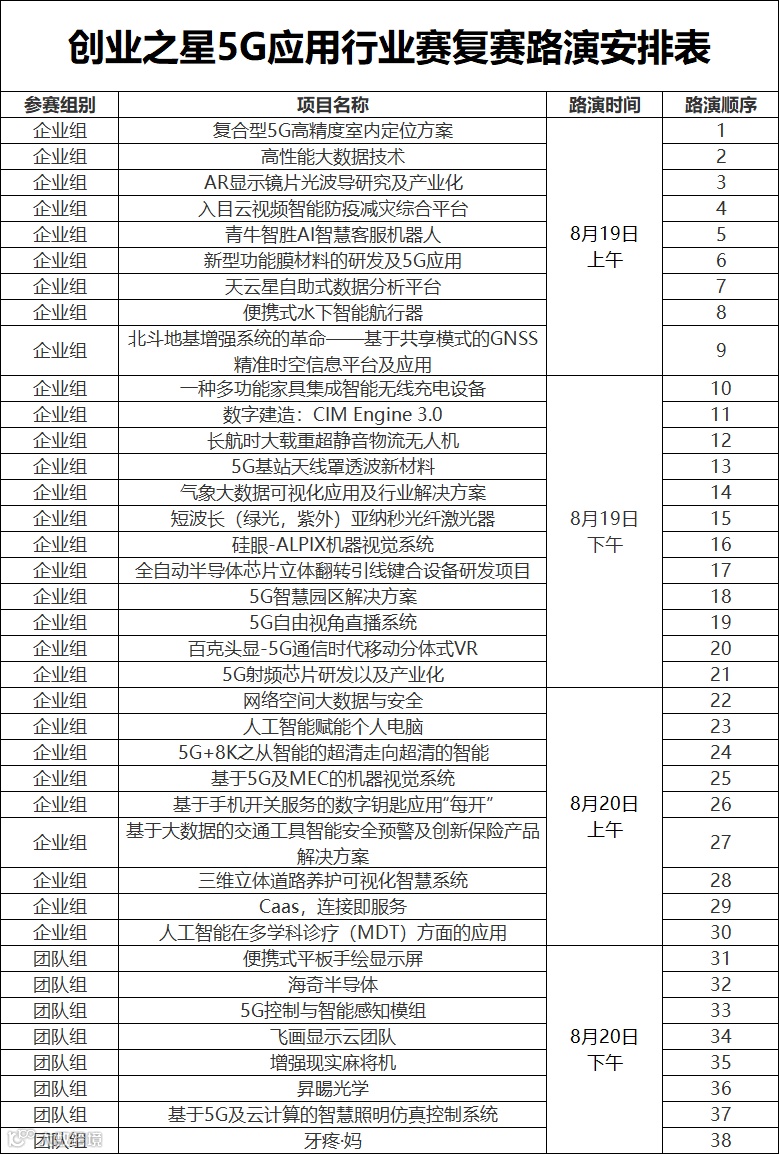 想关注5G好项目,关注创业之星,就不要错过8月19-20日连续两天全天的复赛线下路演了,5G创业之星的星味即将在这里初显!